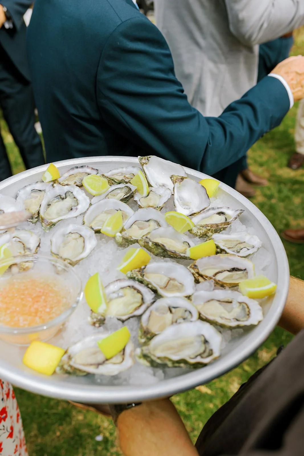 After the ceremony, the mood shifted to pure French joie de vivre. Imagine a Champagne reception under the sun, with platters of fresh oysters and a live band setting the scene. As a French wedding planner, curating such authentic moments throughout our clients’ weddings is what we love to do.